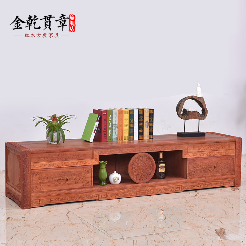 金乾贯章红木家具缅甸花梨简约落地电视柜HLDSG048