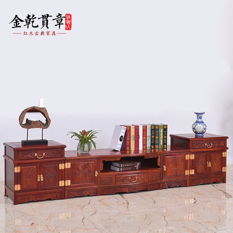 金乾贯章红木家具大果紫檀中式电视柜HLDSG045