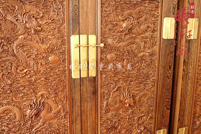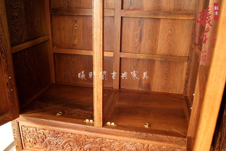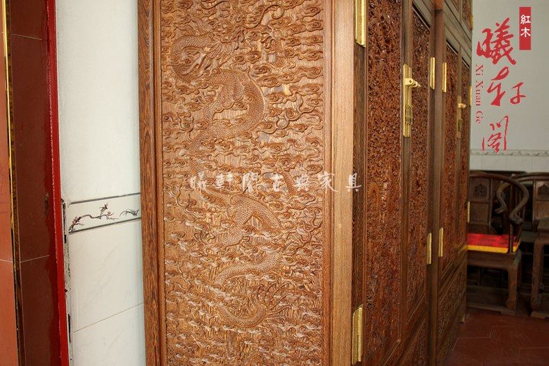 曦轩阁红木家具原木衣柜鸡翅木雕龙--顶箱柜