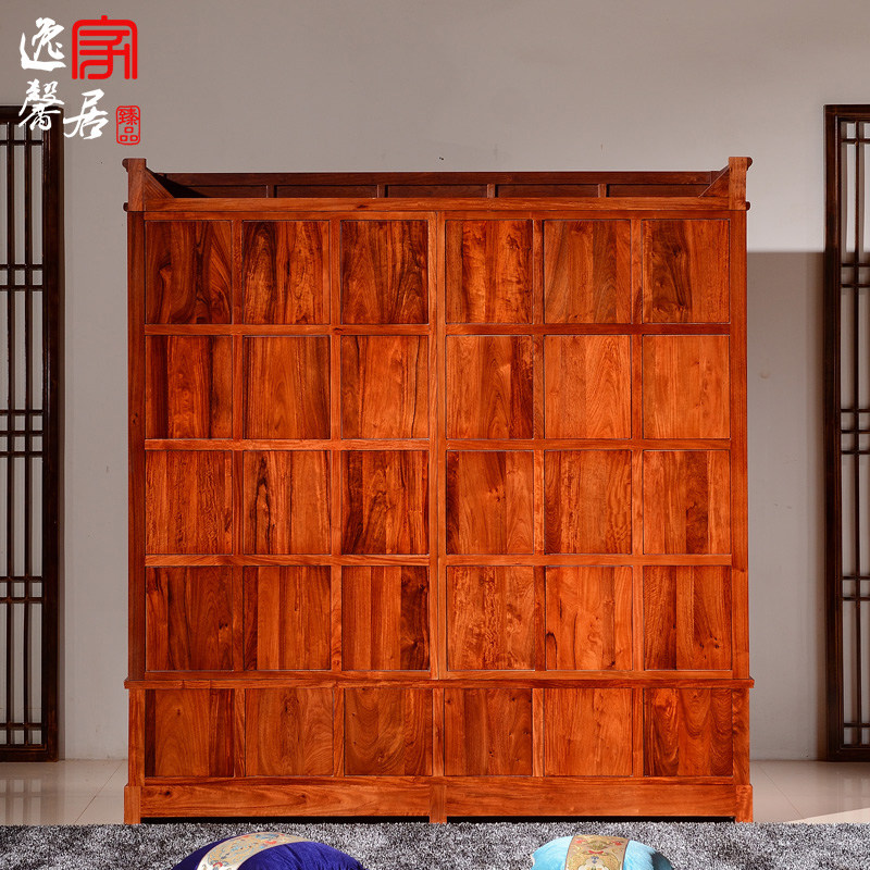 逸馨红木家具缅甸花梨木四门衣柜MDHL-035