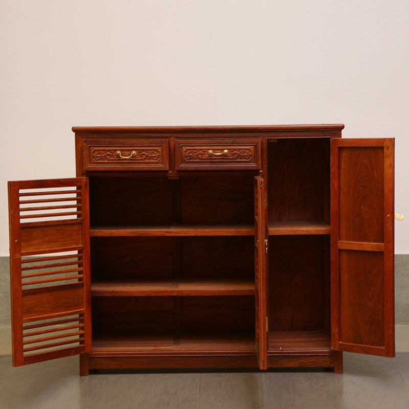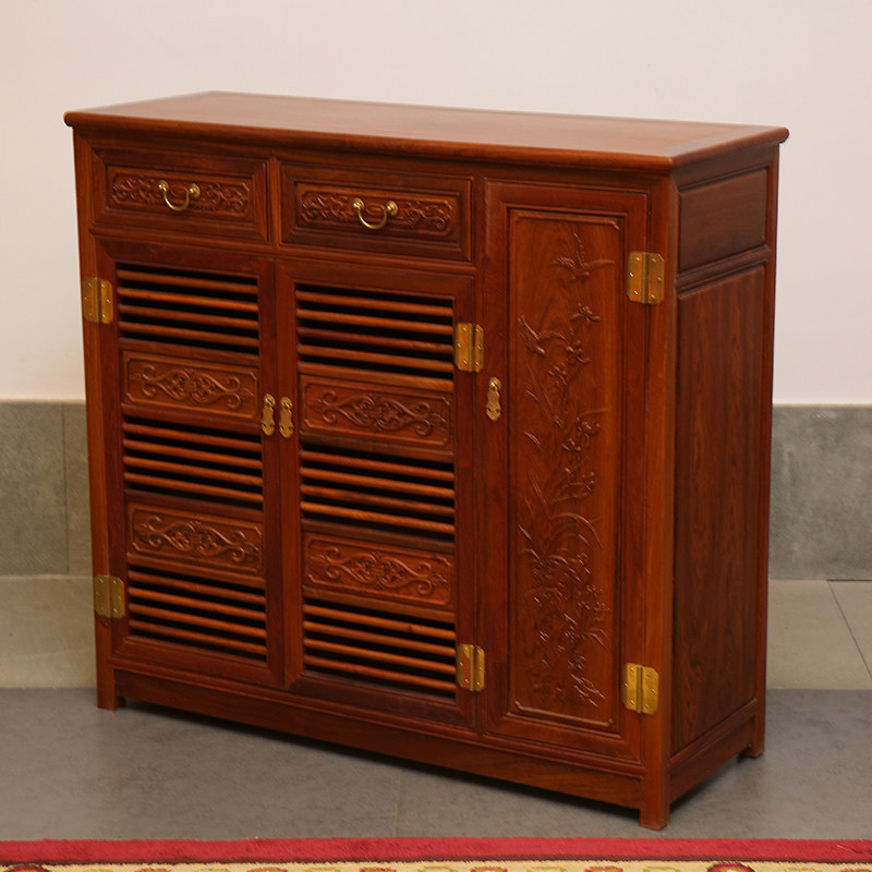 贡艺名居缅甸花梨木古典中式雕花鞋柜GY-HYY-78