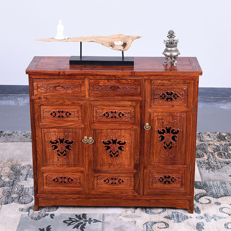 艺铭天下红木家具花梨木雕花鞋柜G-8975