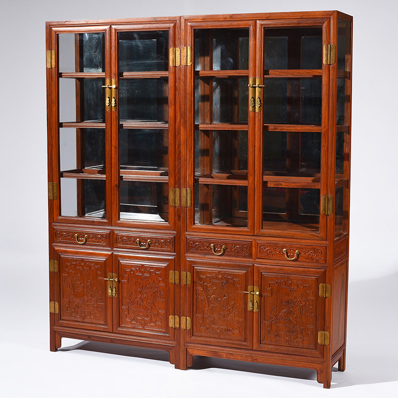 贡艺名居红木家具缅甸花梨木玻璃书柜GY-XLS-72