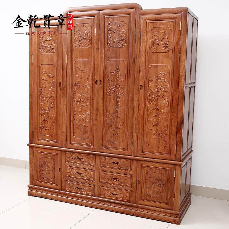金乾贯章红木家具仿古雕花大衣柜JQGZ0155-CH
