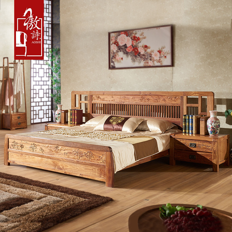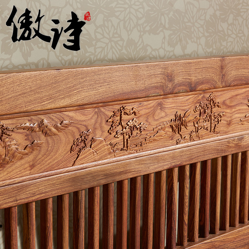 傲诗刺猬紫檀新中式红木双人床X52