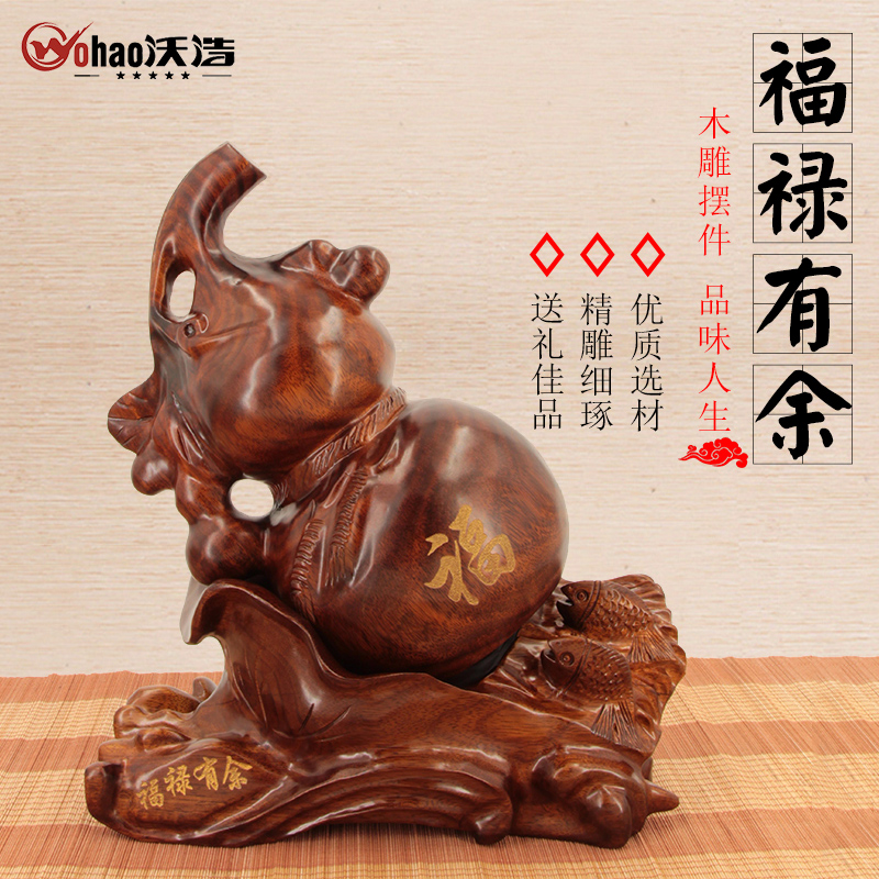 沃浩雕刻工艺品实木风水招财红木葫芦摆件MDWH-188