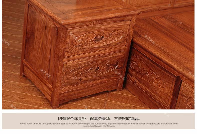 傲诗中式纯实木双人床带床头柜LAS13