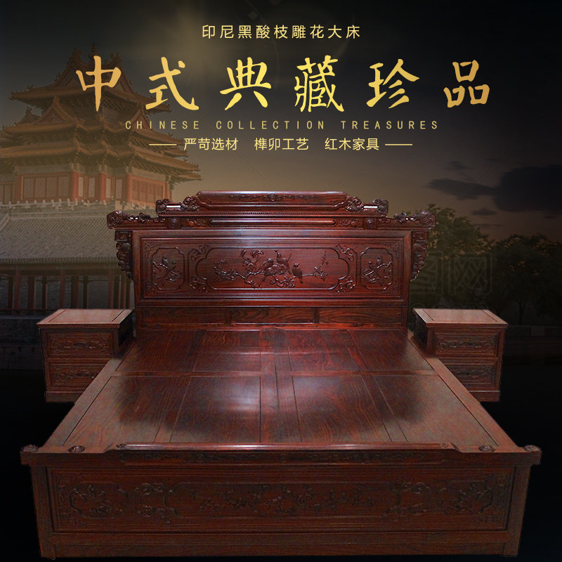 龙上龙仿古家具实木红木床LSLHSZDHC20170713