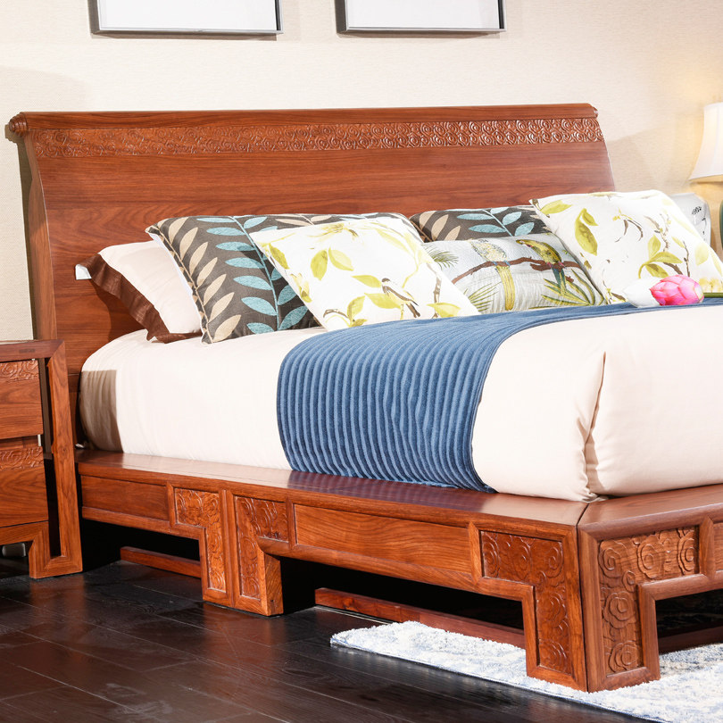 唯克美家新中式红木雕花大床现代刺猬紫檀实木床头柜双人床