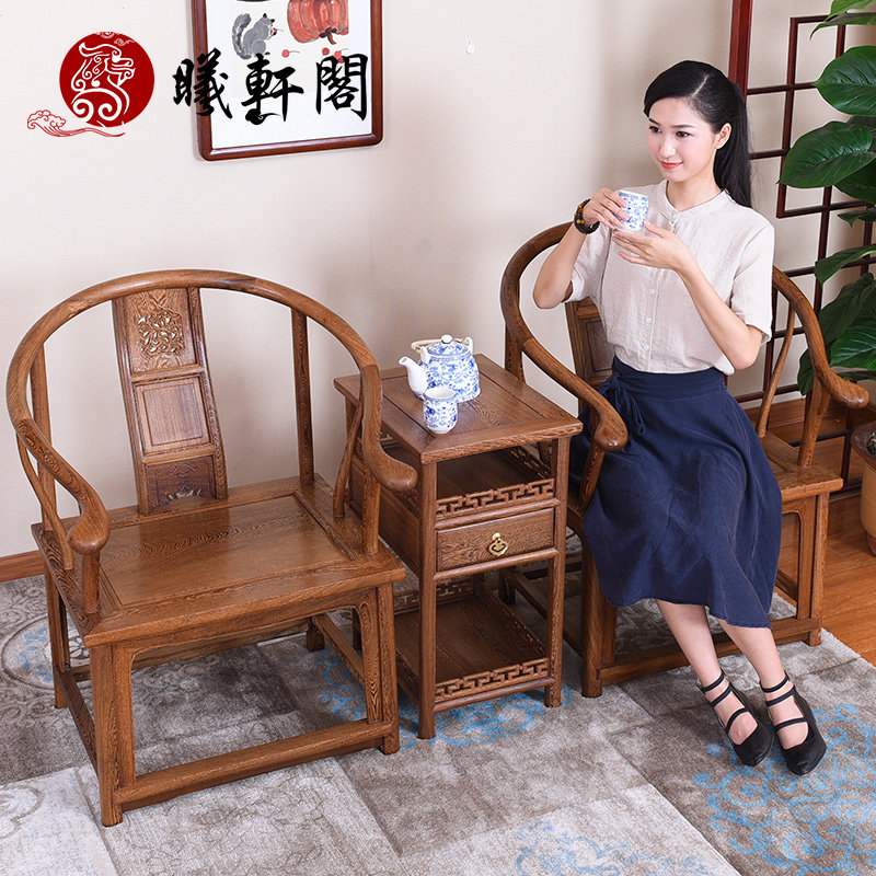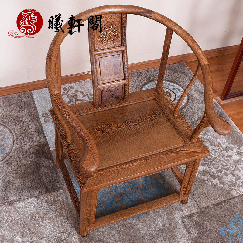 曦轩阁百年鸡翅木红木家具实木圈椅qy003