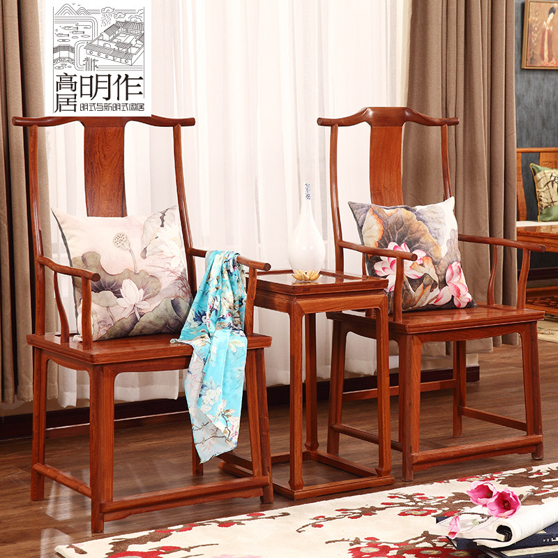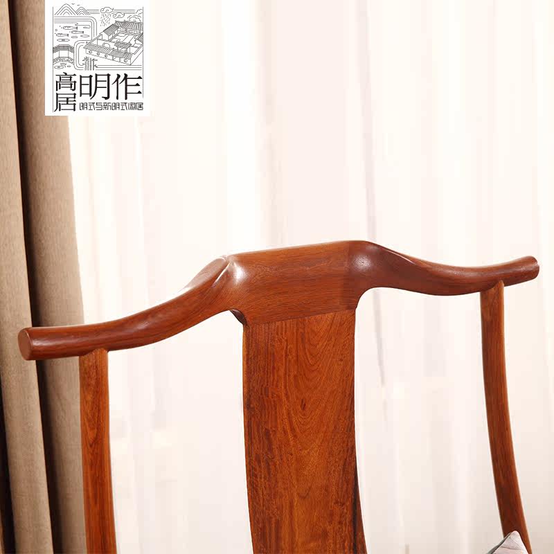 高居明作缅甸花梨木四出头官帽椅