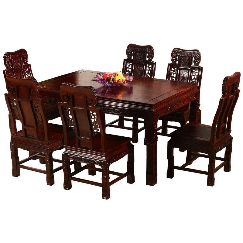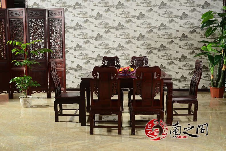 兰之阁非洲酸枝家具长方行餐台配6把椅子