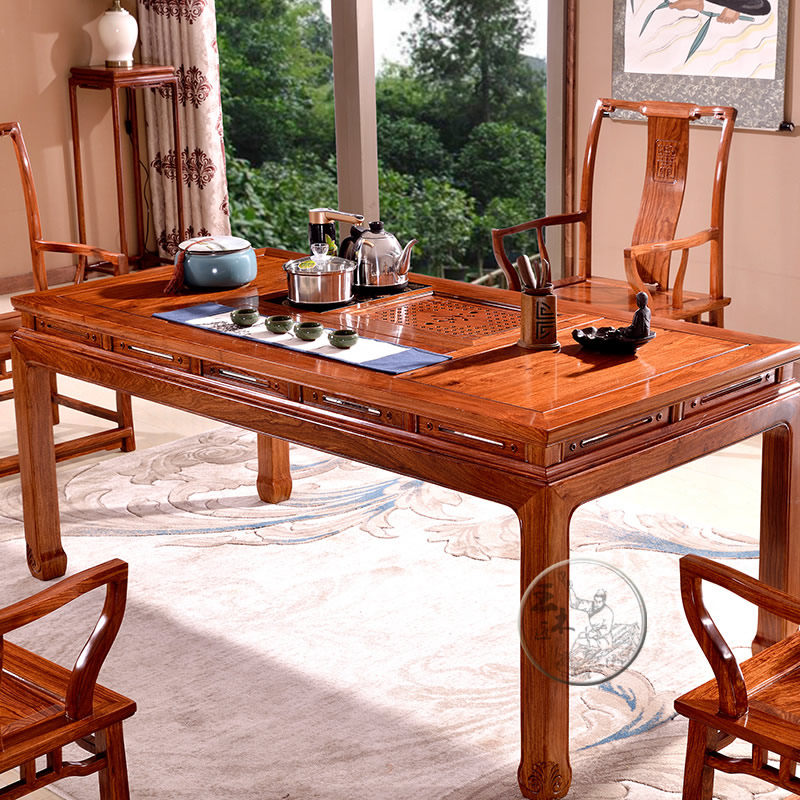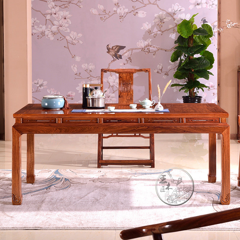 王木匠非洲黄花梨木茶桌方脚束腰茶桌