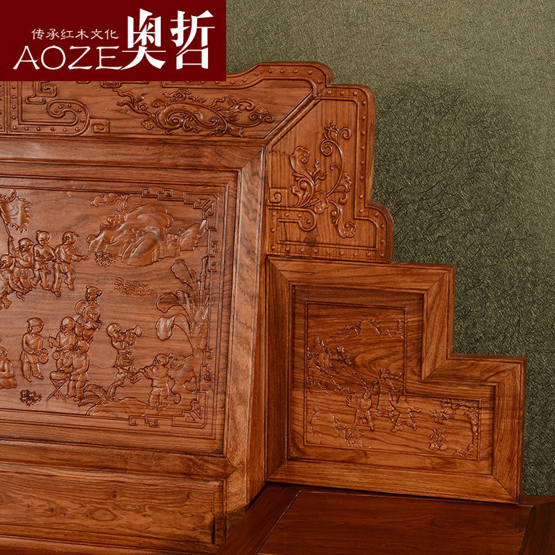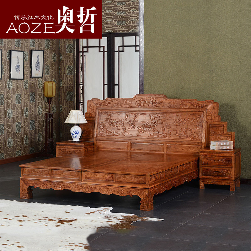 奥哲红木床双人床PZ1