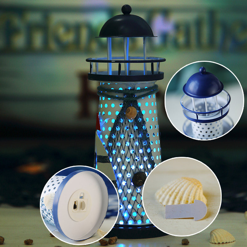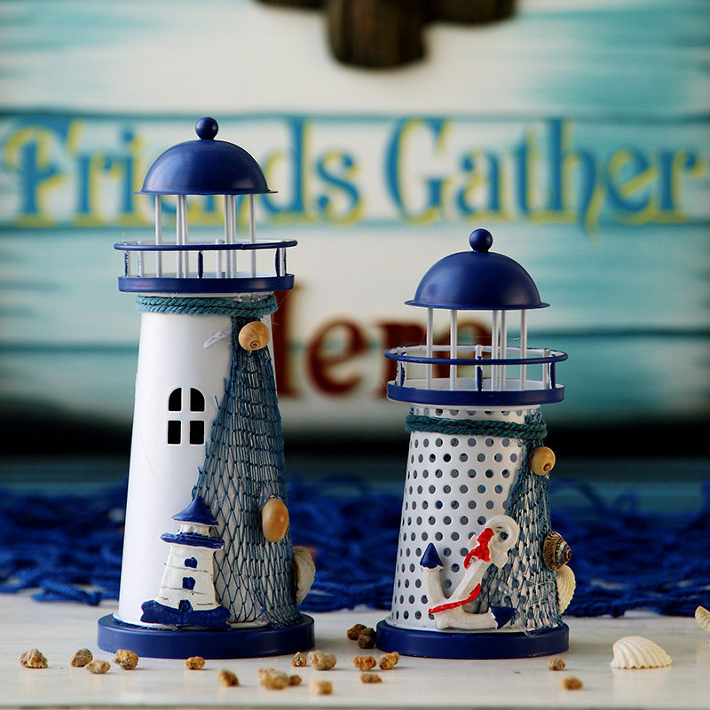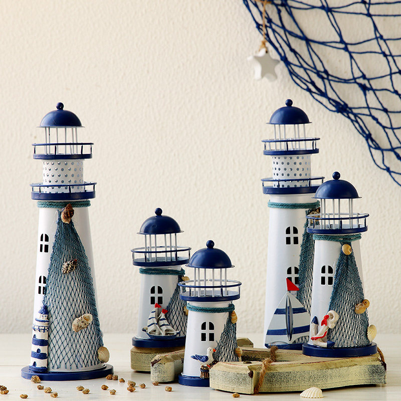 法慕小城地中海贝壳渔网灯塔摆件铁艺灯塔