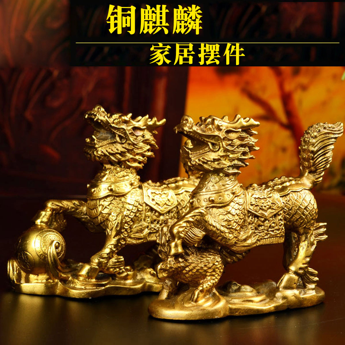 风水阁纯铜麒麟摆件风水阁