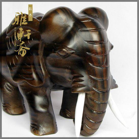 雅轩斋红木东阳木雕大象摆件