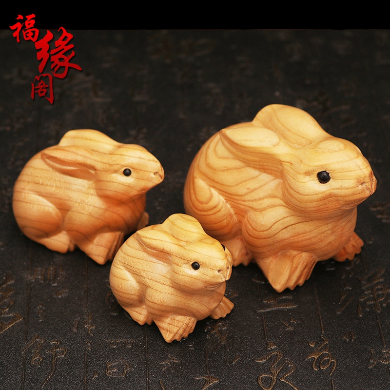 福缘阁桃木兔子摆件