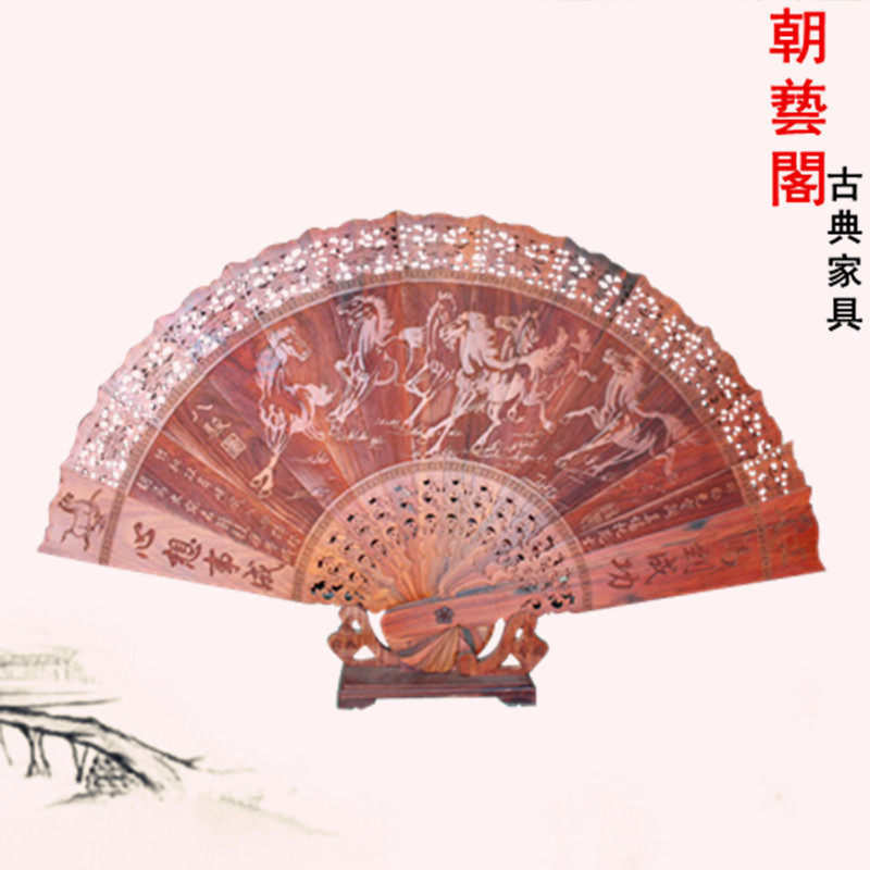朝艺阁木雕八骏图圆扇