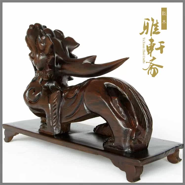 雅轩斋红木东阳木雕刻麒麟摆件