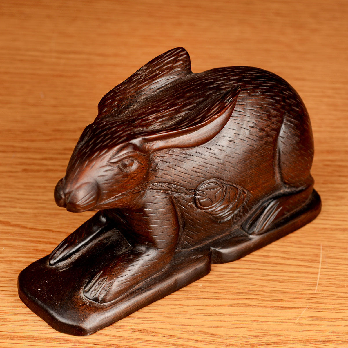 风水阁桃木兔手工精雕生肖风水兔摆件5511