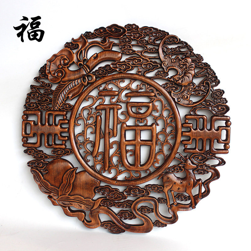 沃浩东阳木雕挂件龙福字香樟木雕刻BS131