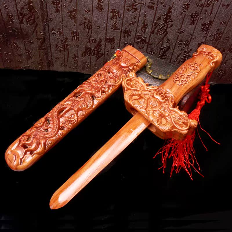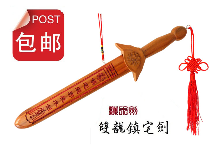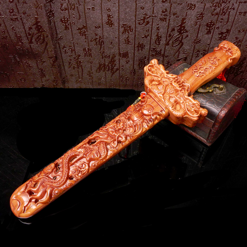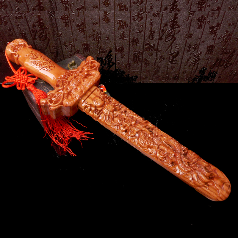 福缘阁桃木剑朱砂剑40厘米木雕挂件双龙123