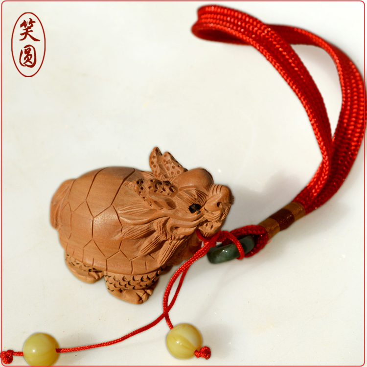 笑圆桃木挂件雕刻龙龟车挂汽车饰ghdsg