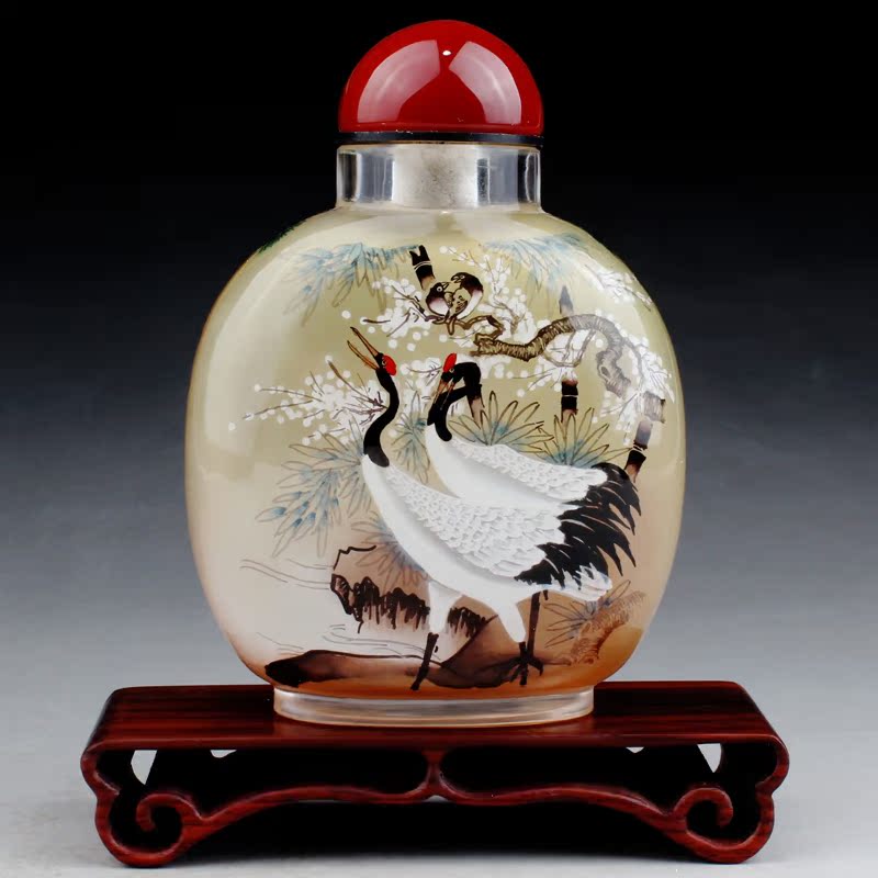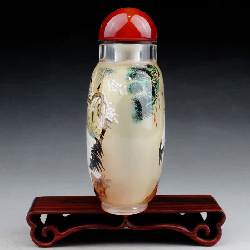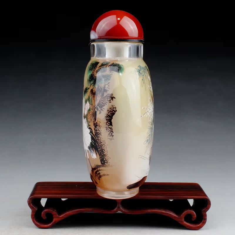 艺壶斋中国风水晶鼻烟壶内画大肚壶 秋艳