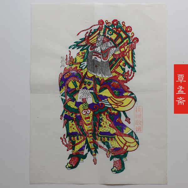 覃孟斋民俗工艺品门神画秦琼敬德步下鞭
