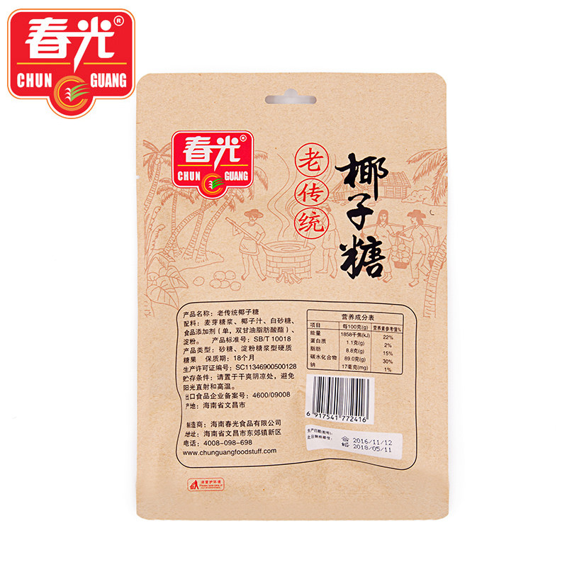 春光食品海南特产糖果民间工艺老传统椰子糖200g*3