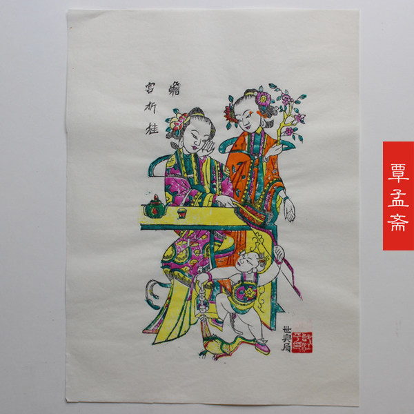覃孟斋民俗工艺品门神画蟾宫折桂官代相传