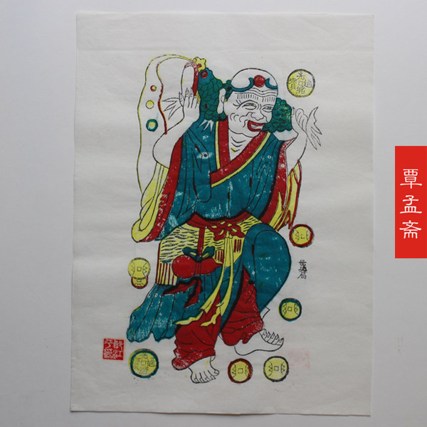 覃孟斋年画木版年画木板海戏金蟾