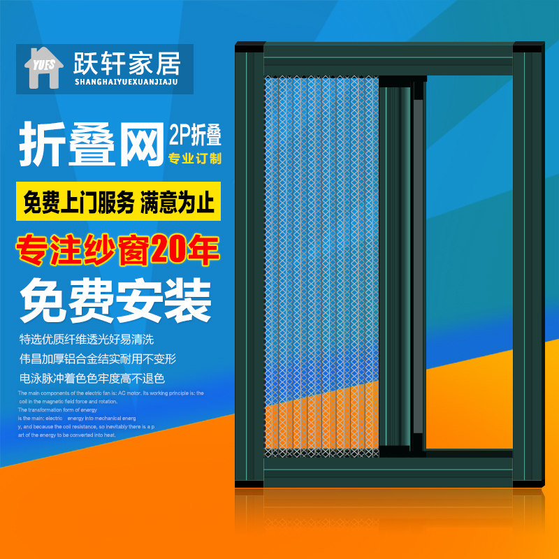 跃轩艺术防蚊纱窗门折叠纱窗易拆洗
