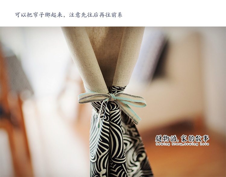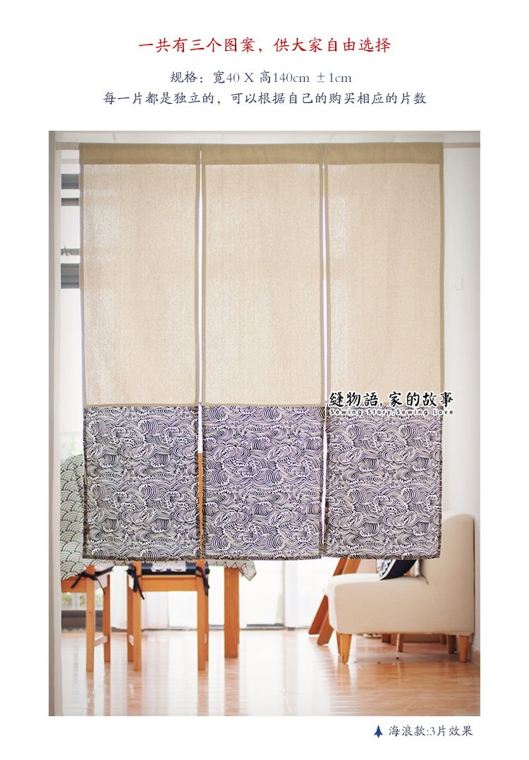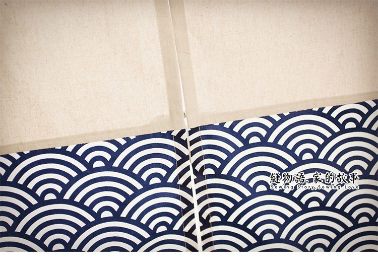 缝物语日式青海波几何棉麻纯棉蓝色窗帘C29CT55
