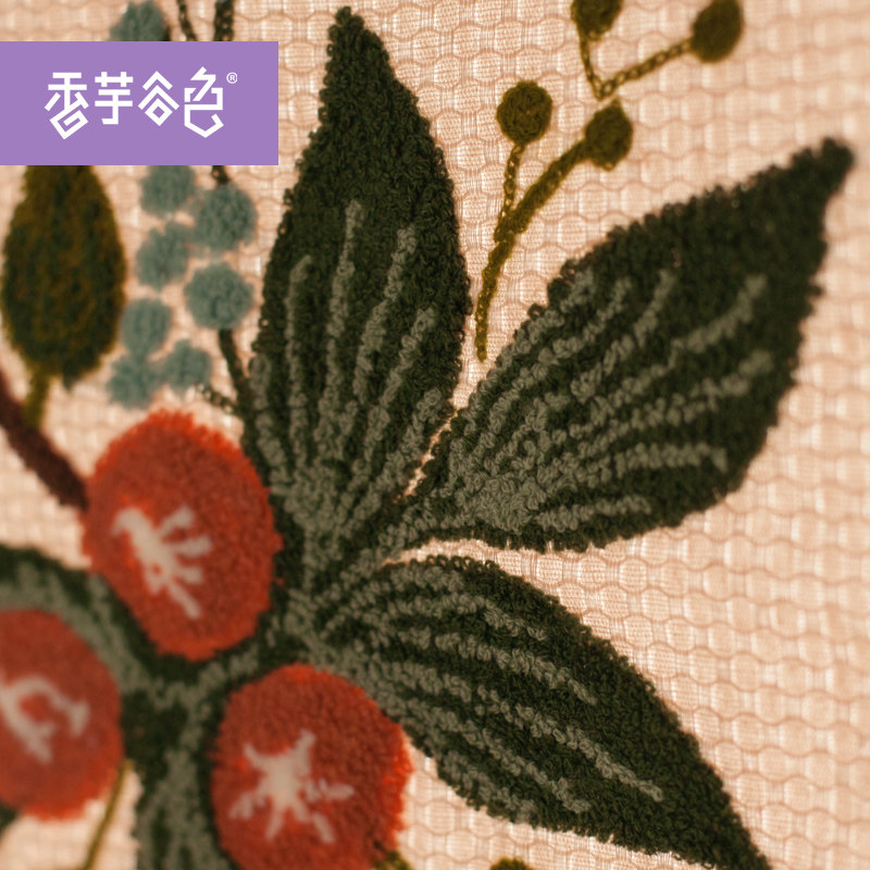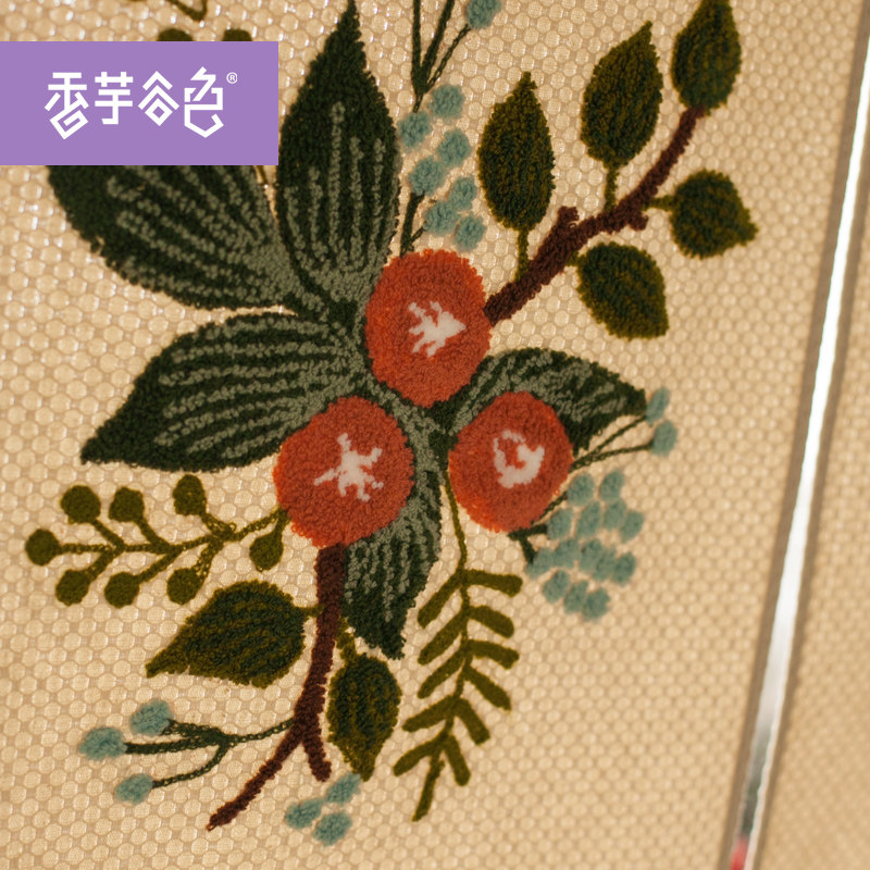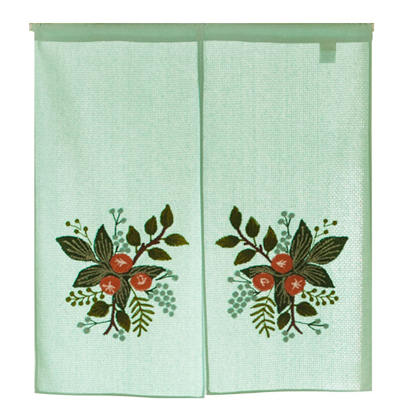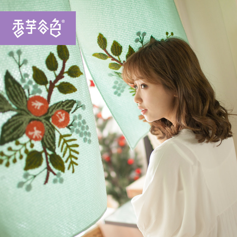 香芋谷色田园门帘隔断手工刺绣对开布艺柜帘
