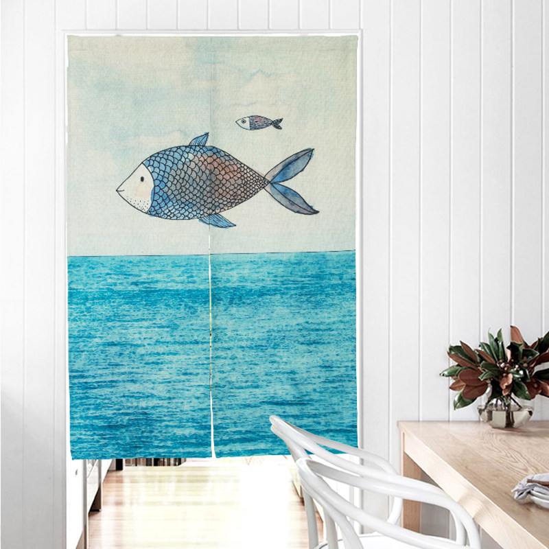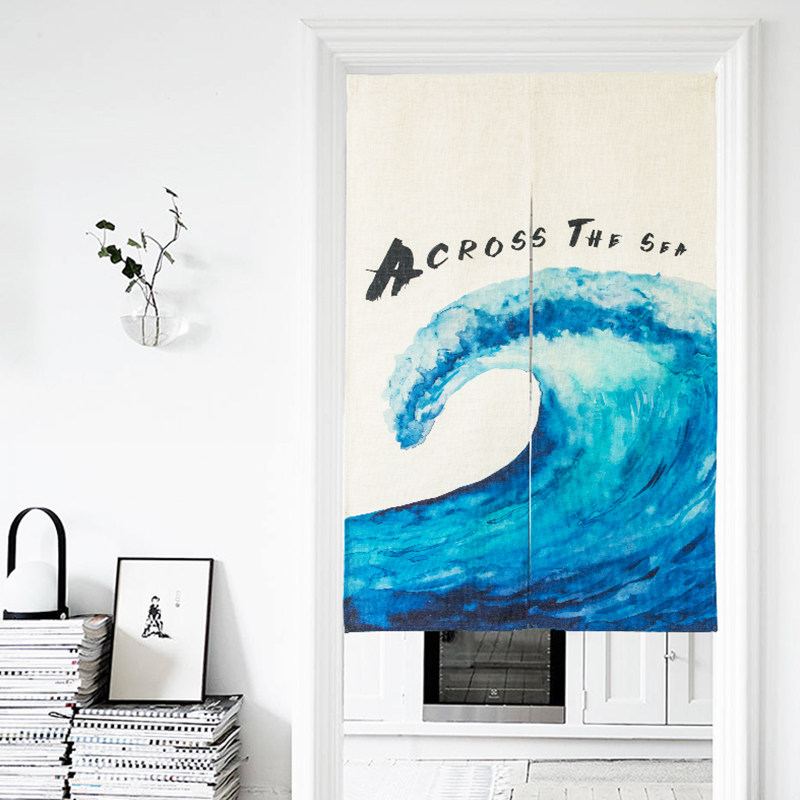格苒杰北欧门帘布艺棉麻小清新隔断屏挪威海域