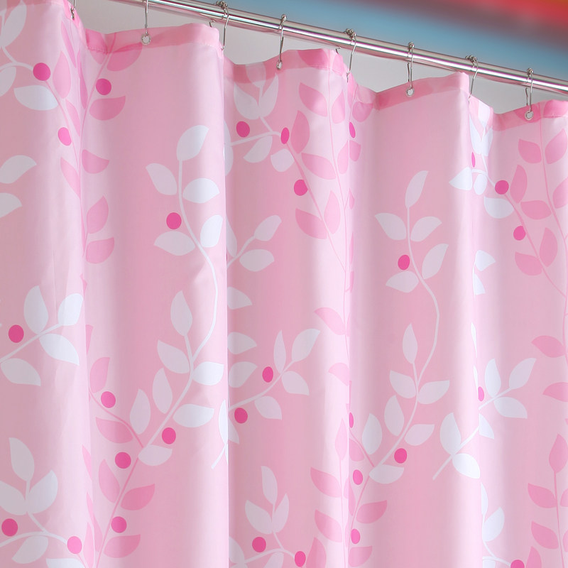 星美家居加厚防霉浴帘窗帘粉叶缘