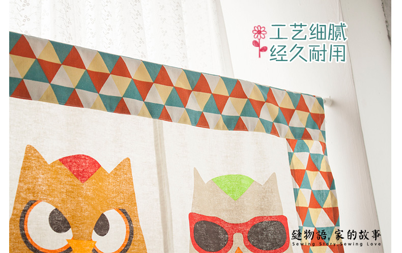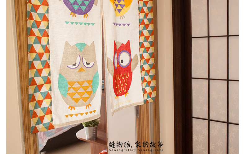缝物语彩色猫头鹰系列棉麻日式门帘A15CT005