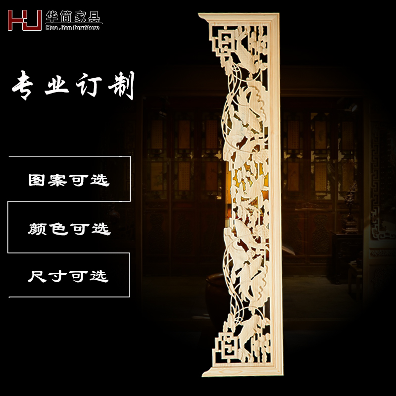 华简家具实木榆木花格仿古屏风隔断hj-7186