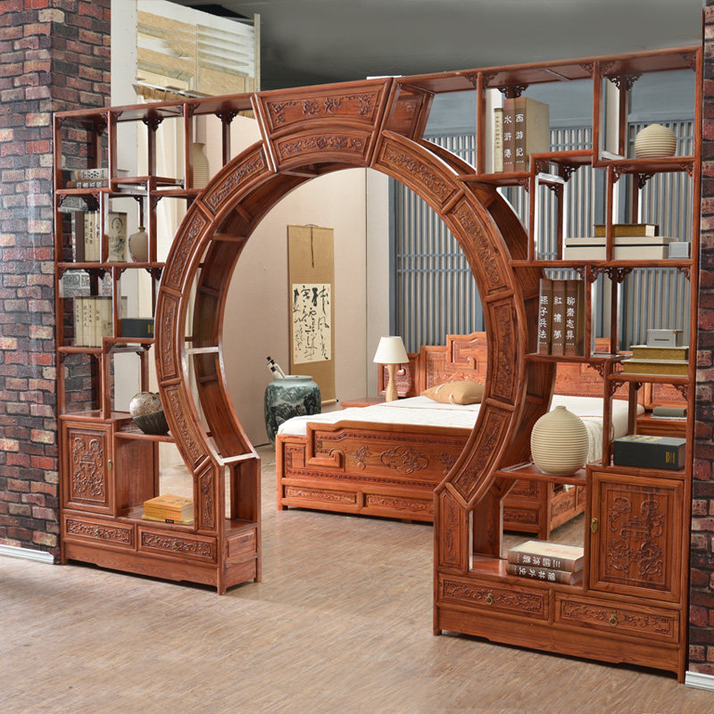 百家汇博古架月洞门中式实木仿古多宝阁YS5980