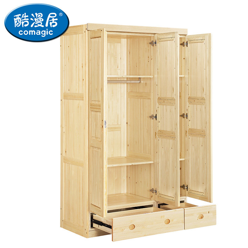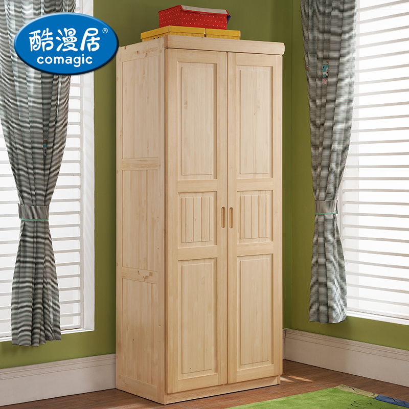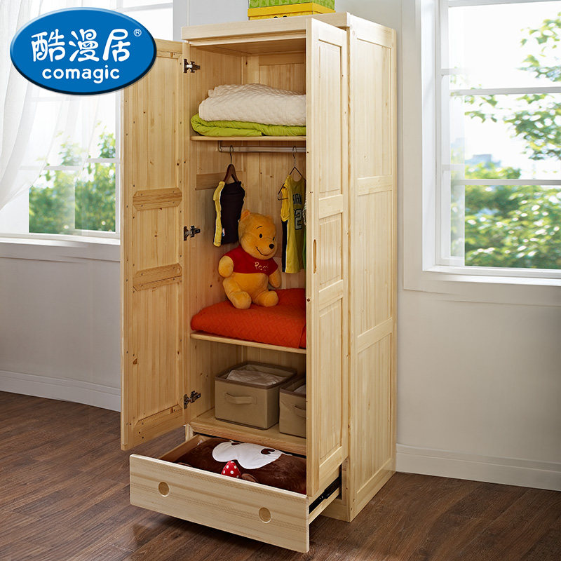 酷漫居儿童家具实木衣柜本松带抽两门衣柜