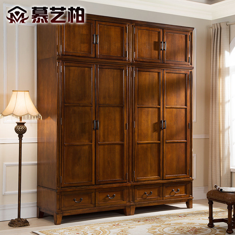 慕艺柏美式实木衣柜欧式衣橱乡村整体四门m0909