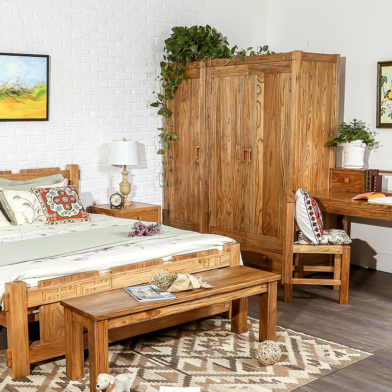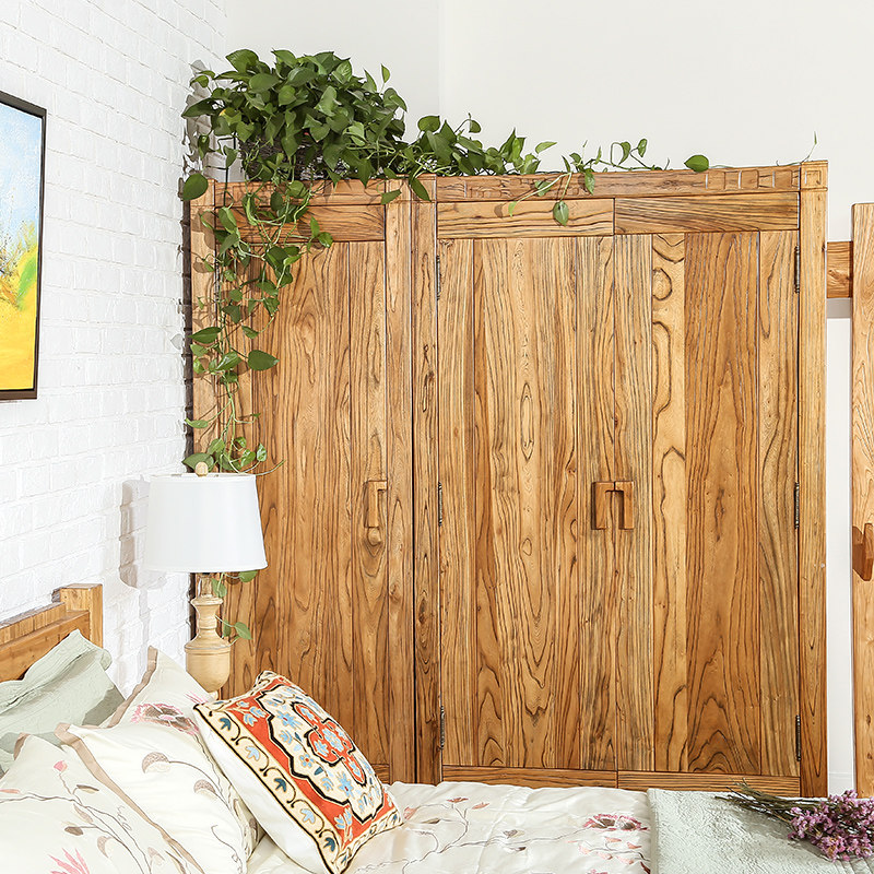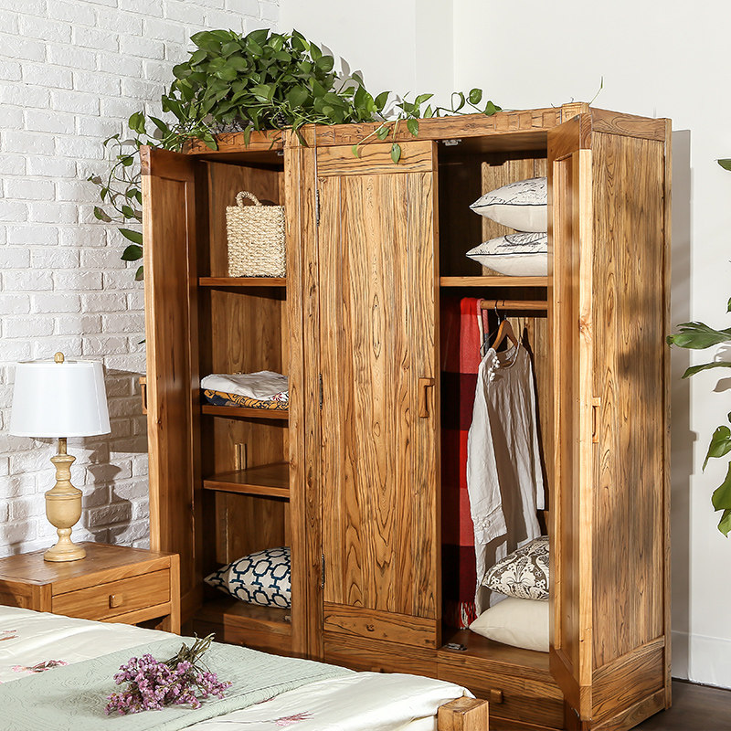 溪木工坊老榆木中式实木衣柜3门SMY-02