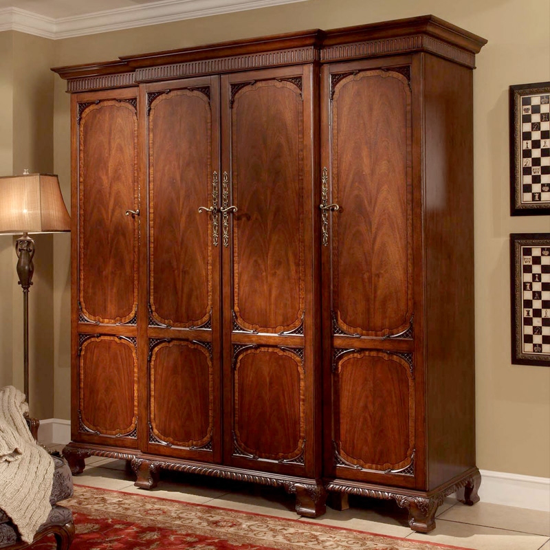 信益轩美式乡村衣柜实木雕刻衣柜四门YG-166A