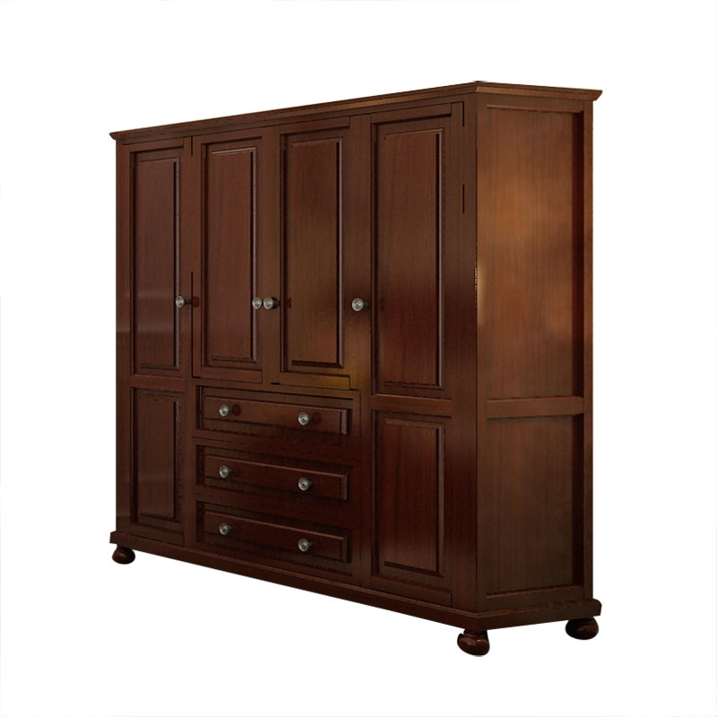 三浩美式乡村衣柜衣橱实木衣柜简约四门YG006