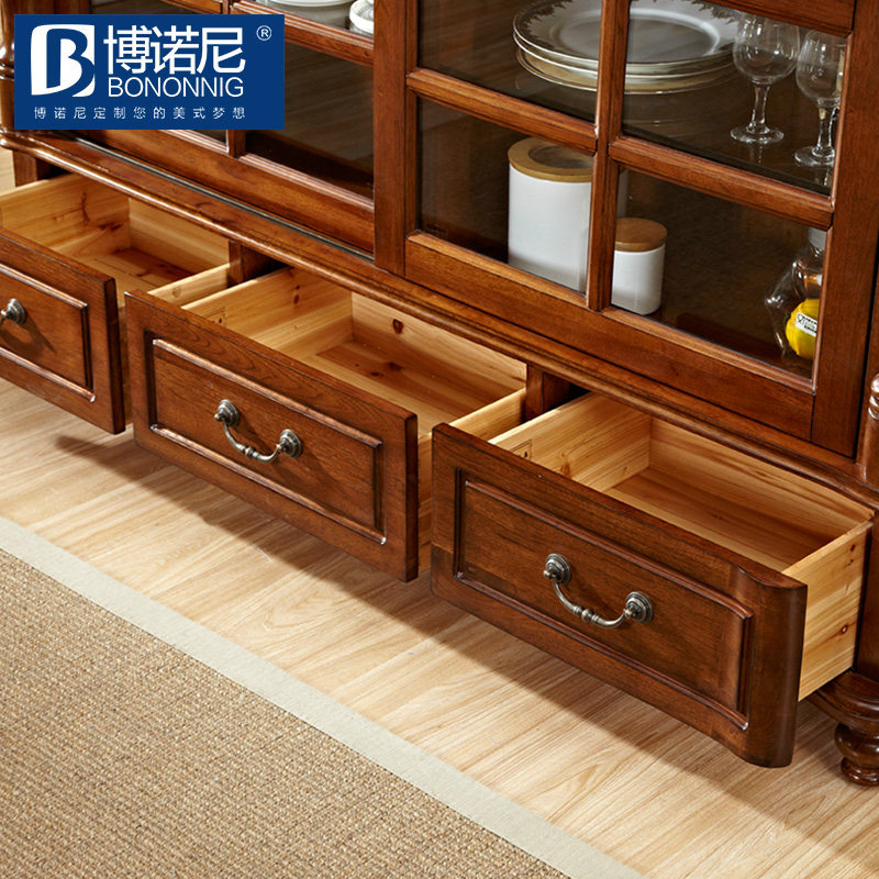 博诺尼全实木餐盘柜美式复古碗碟柜HW1915