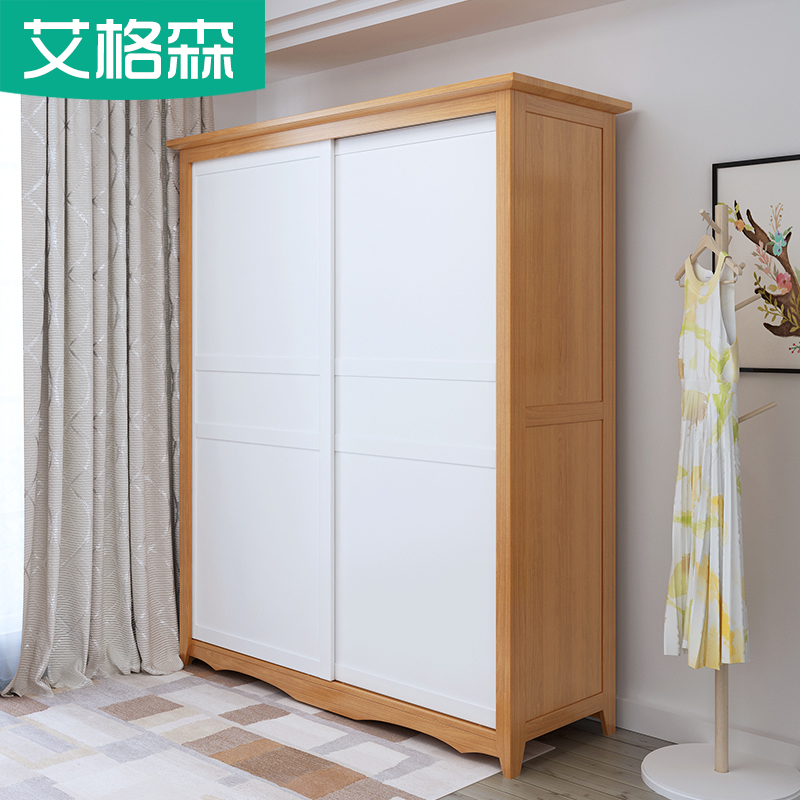 艾格森北欧式滑门衣橱实木大衣柜推拉门X122