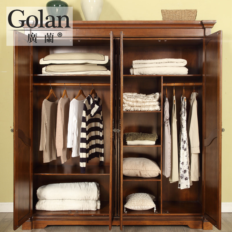 广兰实木衣柜美式整体衣柜四门1911