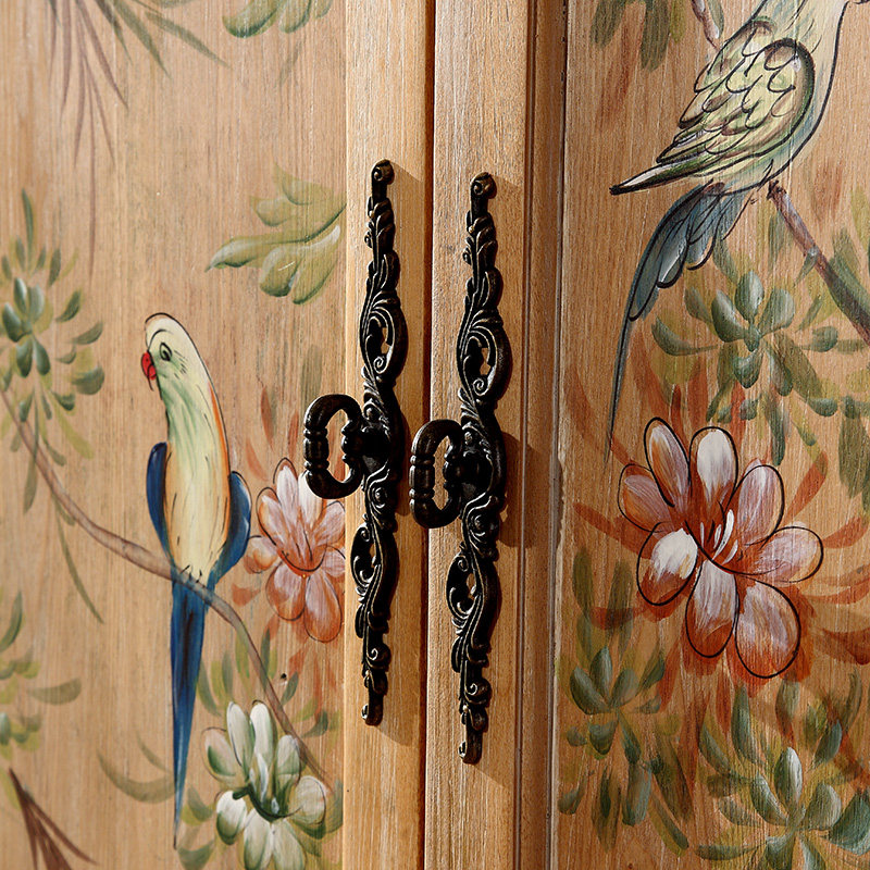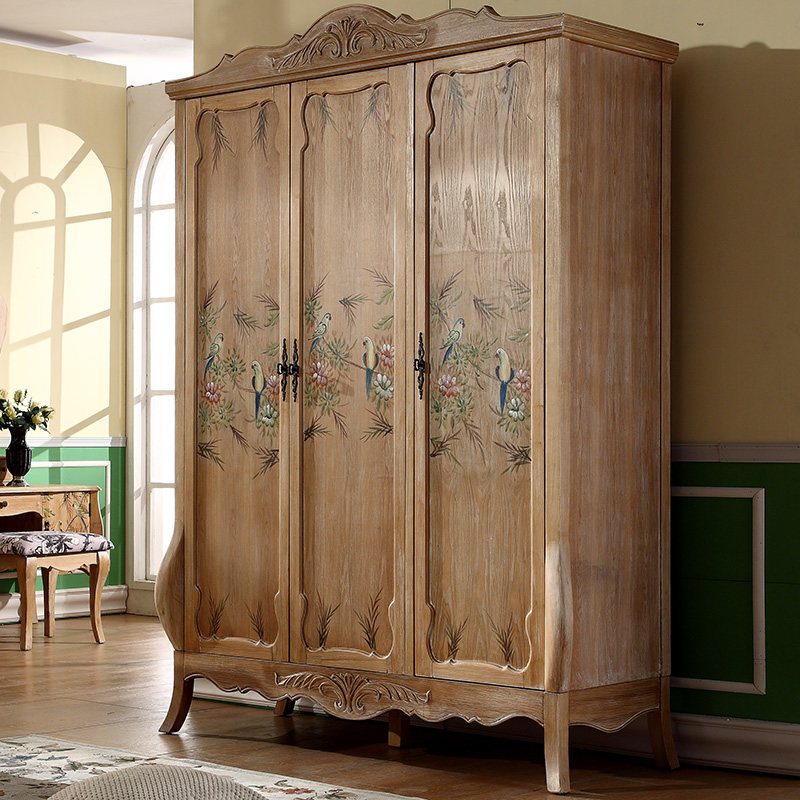 富兰德美式乡村复古彩绘实木衣柜三门FW60638